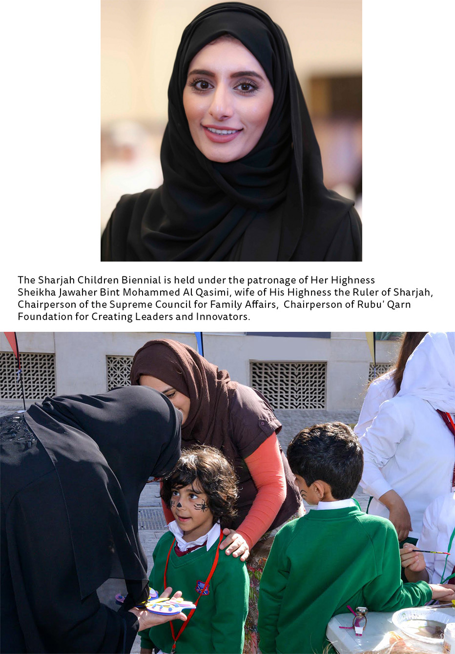 حبانا الله في إمارة الشارقة وفي سائر إمارات الدولة بقيادة رشيدة حكيمة تضع الإنسان محوراً لسياساتها وبرامجها ومبادراتها، وتحرص على تطويره وتأهيله بأفضل الإمكانات لتحقيق التنمية والرقي والتقدم. من حكمة قادتنا استلهمنا رسالة بينالي الشارقة للأطفال: أن نبني جيلاً على تواصل مع الفن منذ الصغر، بحيث يكون الفن وما فيه من إبداع في التصور والتنفيذ مكوناً أساسياً من شخصيته الوطنية والاجتماعية والمهنية.